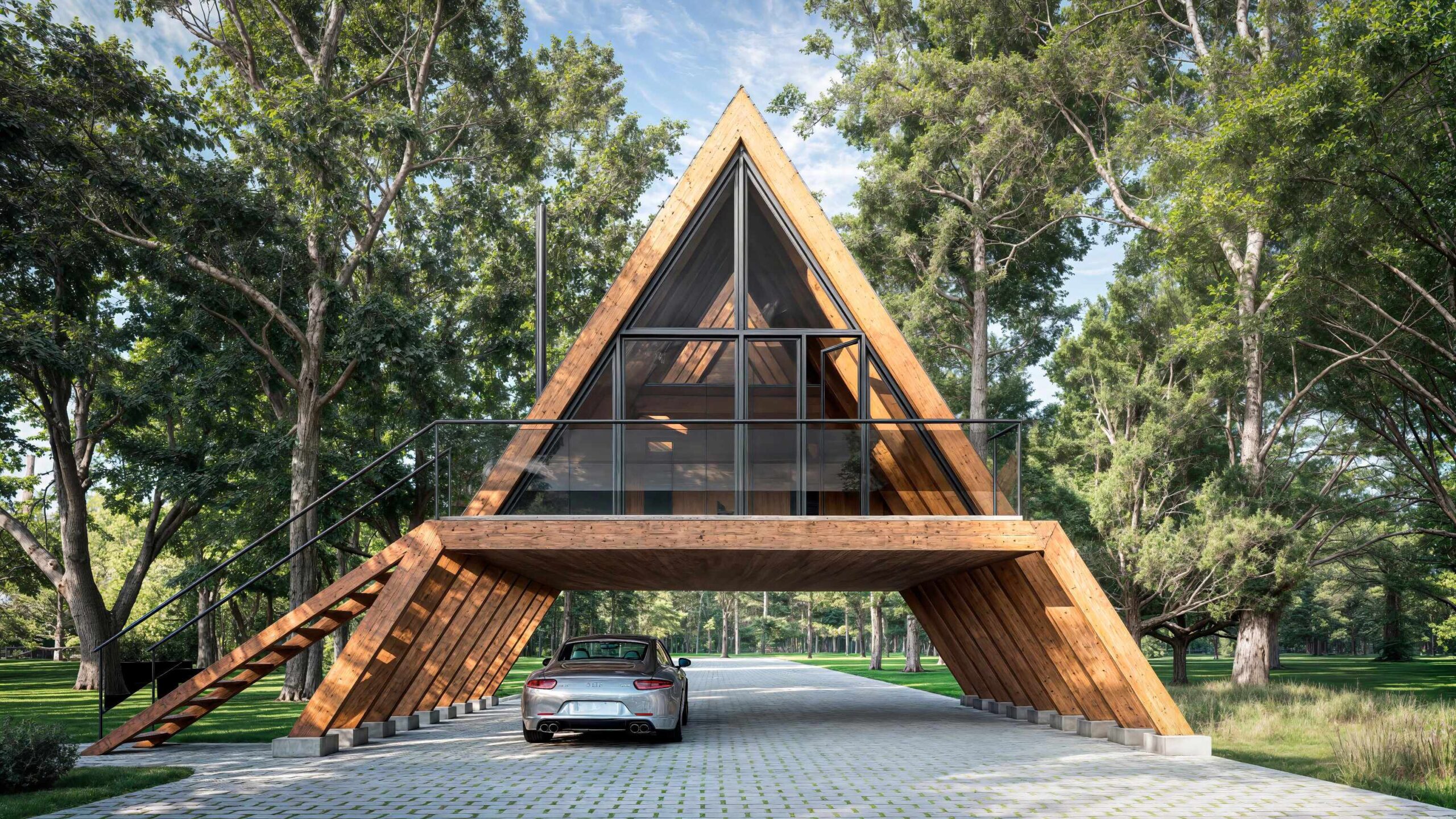 Nuestra cabaña más icónica y demandada. Gracias a su innovadora estructura elevada, el modelo Zúrich optimiza el espacio al máximo integrando un garaje o zona multiusos bajo la vivienda. Una solución arquitectónica imponente que combina diseño suizo de vanguardia con la máxima utilidad práctica.